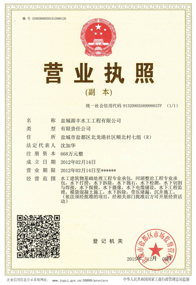 鹽城源豐水工工程有限公司是一家專業(yè)從事水下作業(yè)的股份制企業(yè),公司多年以來(lái),堅(jiān)持以人為本,誠(chéng)信經(jīng)營(yíng),憑借質(zhì)量、效率、信譽(yù)的作風(fēng)贏得客戶的信賴和贊譽(yù)。
